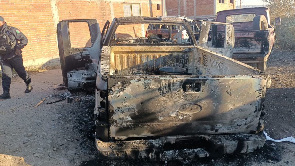 En este municipio, sicarios se enfrentaron por más de tres horas en el poblado rural denominado como Peña del Panal, donde dos vehículos fueron incendiados y con múltiples impactos de bala.