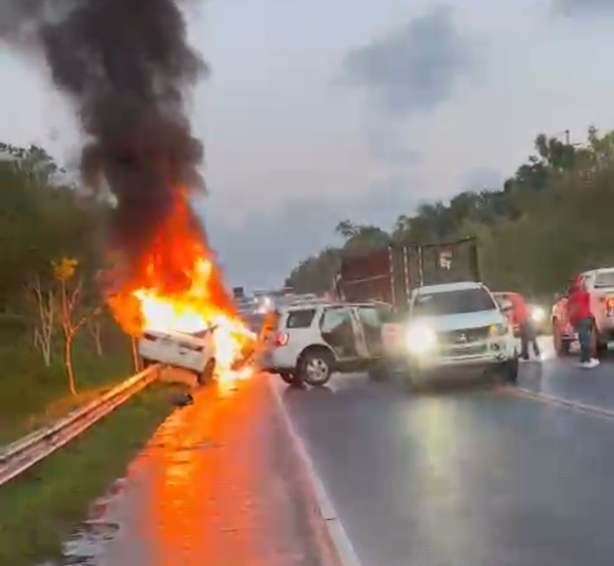 Por otro lado, el carro se incendió tras la colisión, teniendo sus ocupantes que salir rápidamente, a pesar de tener diversas heridas.
