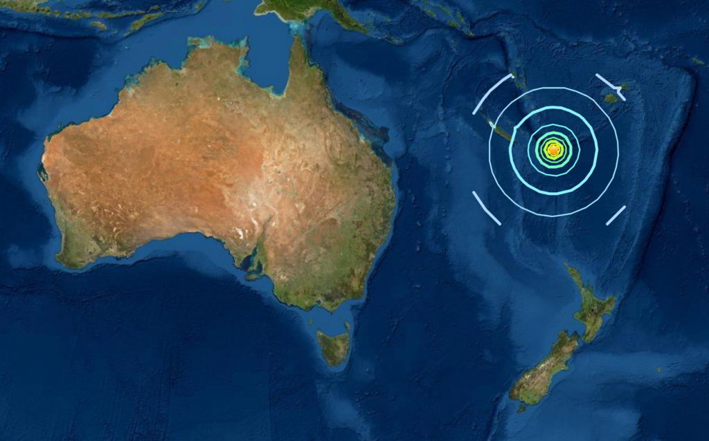 El Servicio de Alertas por Tsunami del Pacífico indicó que de acuerdo a los datos disponibles "las olas peligrosas son posibles en las costas dentro de un radio de 1,000 kilómetros" al epicentro, lo que podría afectar a vanuatu y Fiyi.