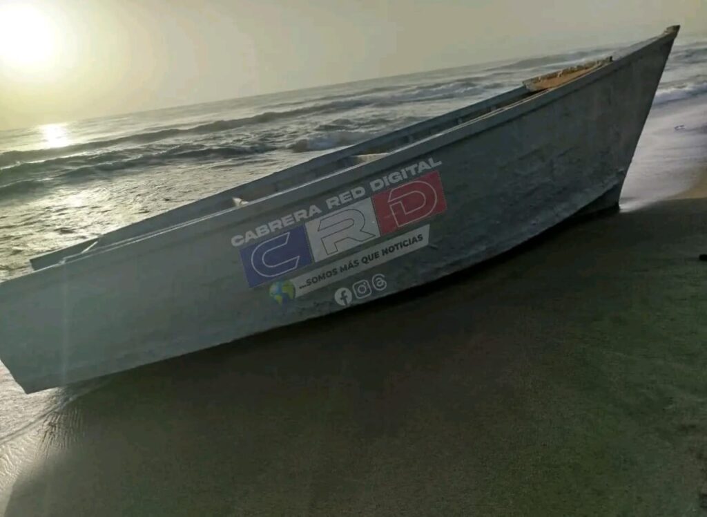 Esta embarcación, sin identificación y de color gris, fue utilizada en un intento fallido de salida ilegal por la desembocadura del Río Nagua.