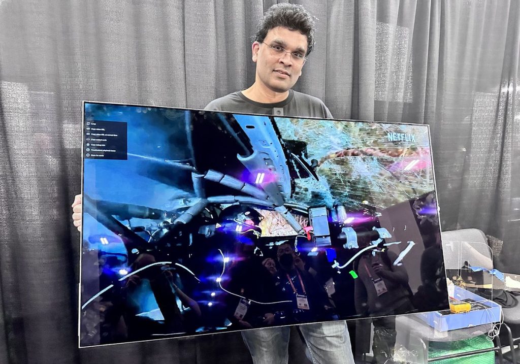 Krishnan imagina “un mundo con múltiples pantallas en las paredes que aporten un valor significativo a los consumidores estén donde estén dentro de los hogares”.” “Para conseguirlo, es importante rediseñar la televisión eliminando todas las frustraciones habituales y facilitando al máximo su instalación en cualquier superficie de la casa”, insiste. Además, varios televisores podrían juntarse para formar uno más grande con, por ejemplo, “una gran pantalla de 110 pulgadas”. “Si haces una fiesta, podrías juntar cuatro televisiones y, cuando termine, dividirlas de nuevo para llevarlas a diferentes habitaciones”, sugiere.