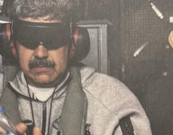 El presidente de EE.UU., Donald Trump, publicó este sábado una foto del presidente venezolano, Nicolás Maduro, esposado y con los ojos y oídos