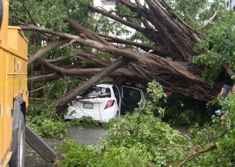 Fuertes brisas y lluvias provocan caída de árboles y daños a vehículos en Gascue