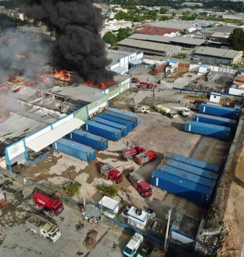 Se registra incendio en una nave industrial en la autopista Duarte