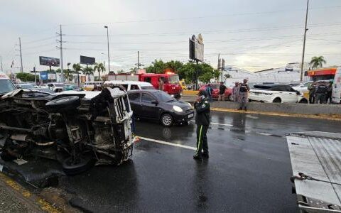 Se produce accidente de tránsito entre minibús y yipeta en avenida Kennedy próximo a Lope de Vega