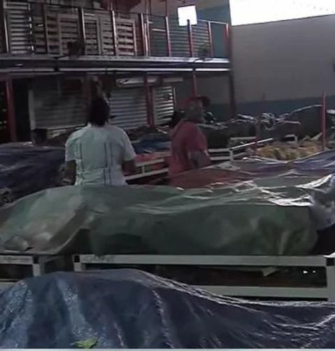 Comerciantes encienden neumáticos tras inundaciones en el mercado de Herrera