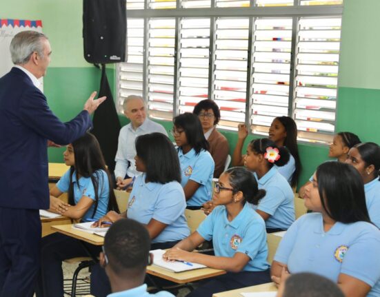Con la visita del presidente Luis Abinader al Liceo Profesor Germán Martínez Tavárez, en el sector Los Ríos de la capital, los estudiantes.