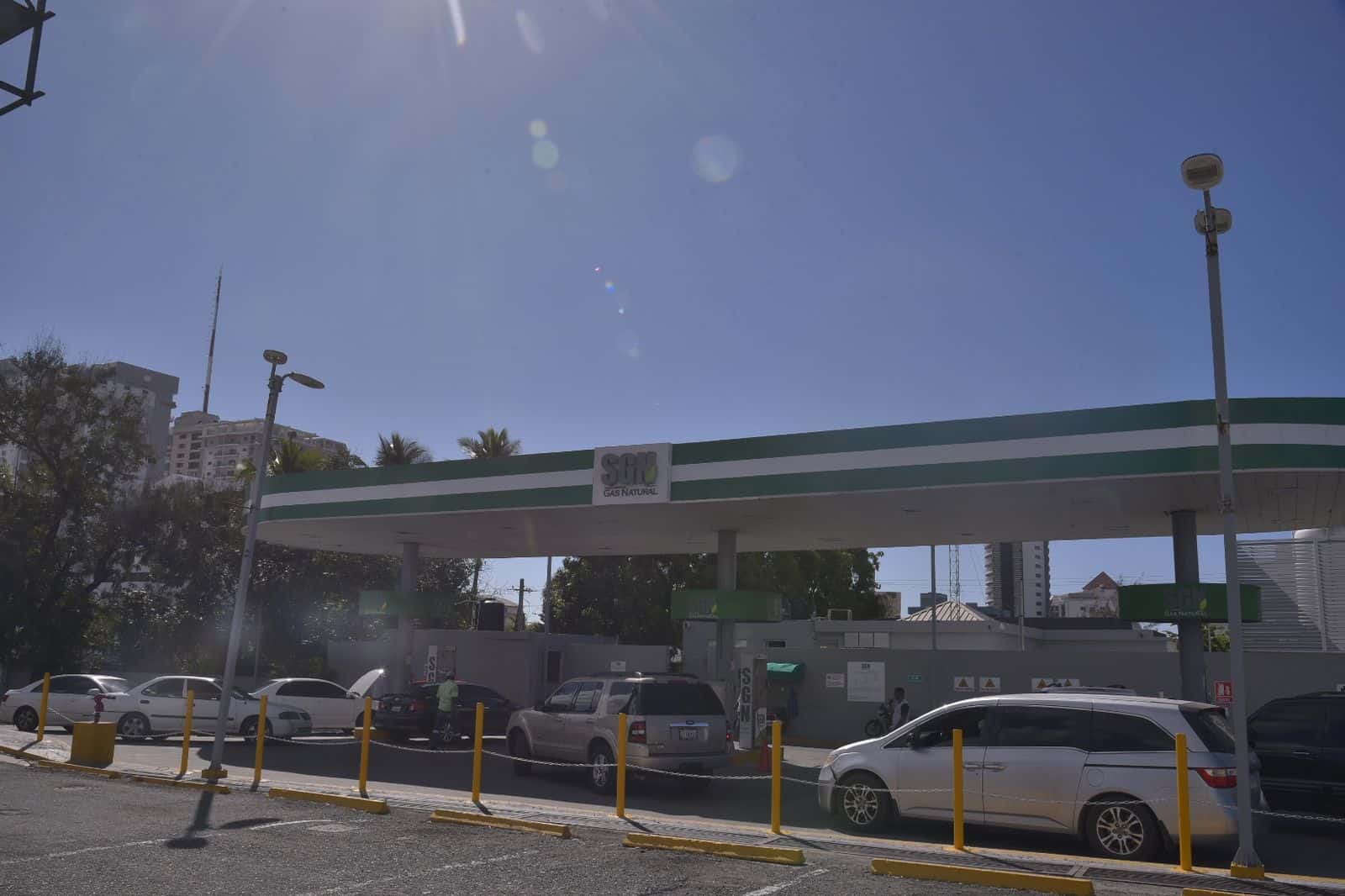 Santo Domingo. -Conductores que utilizan en sus vehículos gas natural hacen largas filas la mañana de hoy para obtener el combustible en la estación ubicada en Plaza Lama de la avenida 27 de Febrero.