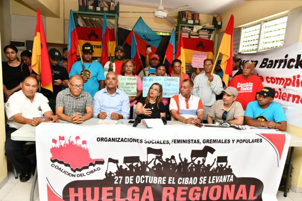 SANTIAGO, REP. DOMINICANA – 8 de octubre de 2025 – Una amplia coalición de organizaciones sociales, populares, gremiales, ambientales y Feministas del Cibao anunció hoy en conferencia de prensa la convocatoria a una huelga regional que paralizará la región el próximo lunes 27 de octubre. La medida busca exigir al gobierno respuestas concretas ante el alto costo de la vida, la corrupción, la impunidad y una serie de demandas comunitarias desatendidas.