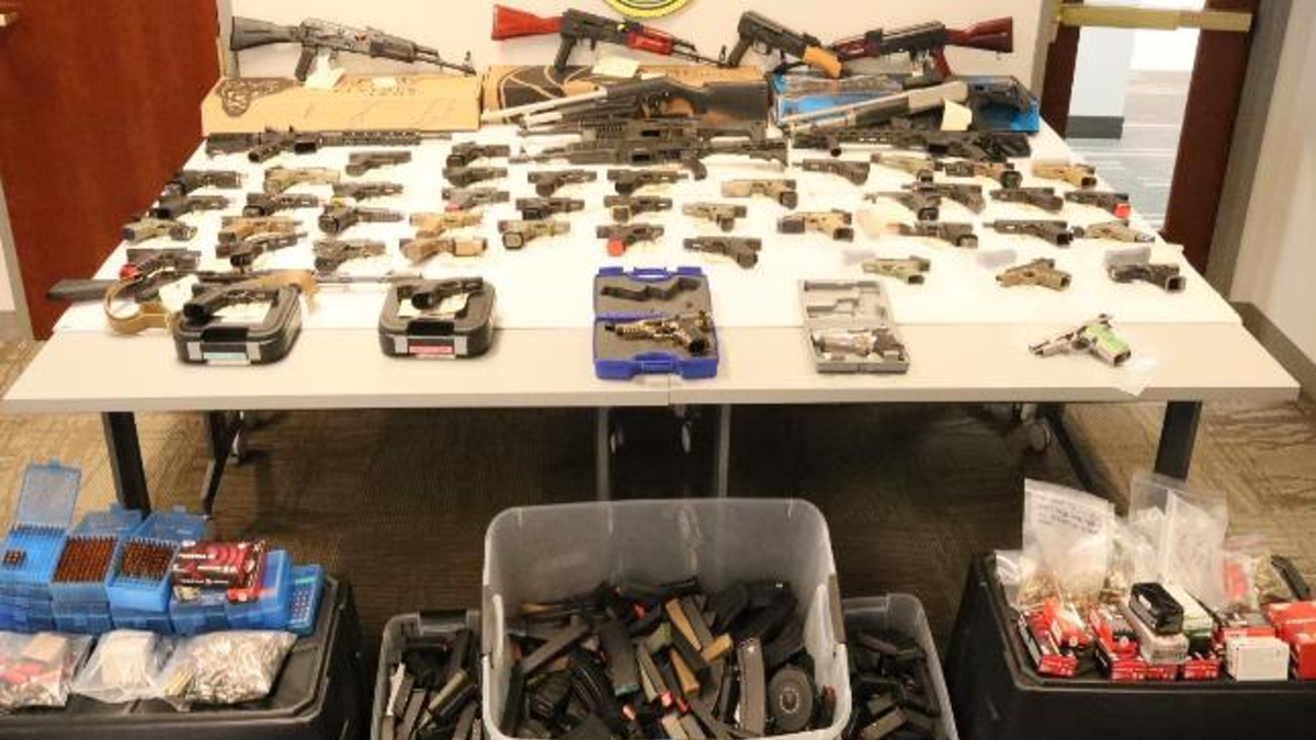 Allí, los agentes encontraron a Ortega Martínez y recuperaron aproximadamente 57 armas de fuego, 30 cajas de armas vacías, aproximadamente $16,000 en efectivo, municiones y contadores de billetes.