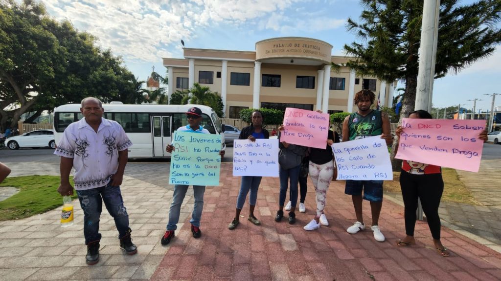 Nagua.- Varias personas se presentaron la mañana de este lunes al palacio de justicia de este municipio, en protesta de los presuntos abusos que funcionarios pertenecientes a la Dirección Nacional de Drogas (DNCD) están cometiendo con jóvenes inocentes en Río San Juan, cuando ellos saben quiénes son los que tienen el negocio de las distancias controladas.