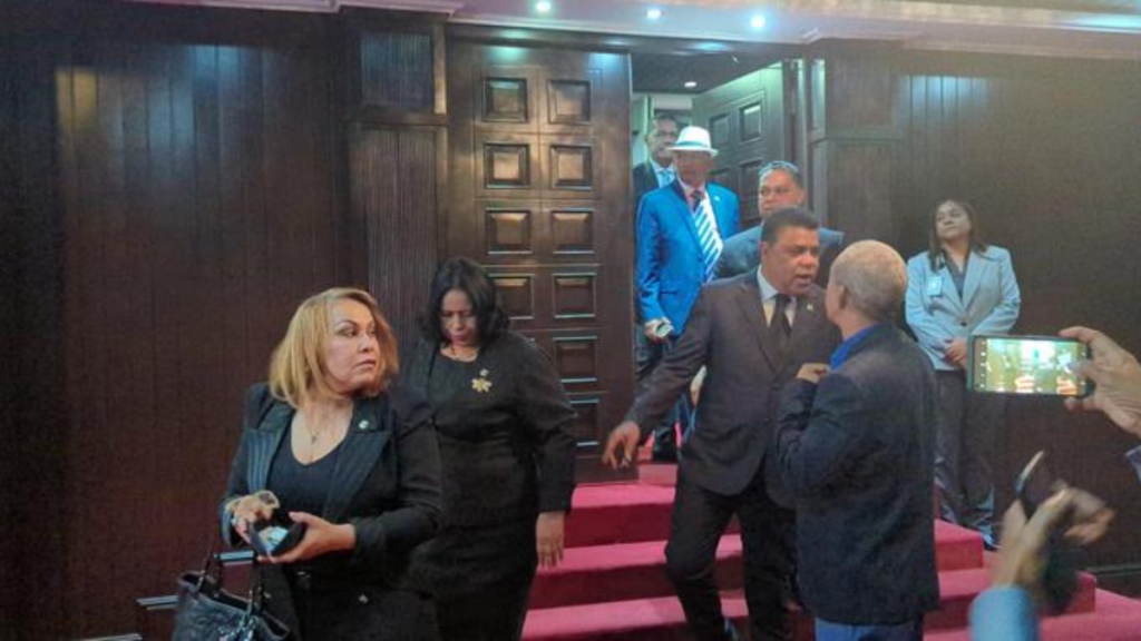 Tras ocho diputados tomar un turno de ponencia para expresarse sobre el incidente donde cuatro legisladores del PLD resultaron con heridas leves y no dejarlos entrar a la fiscalía, estos decidieron abandonar el hemiciclo.