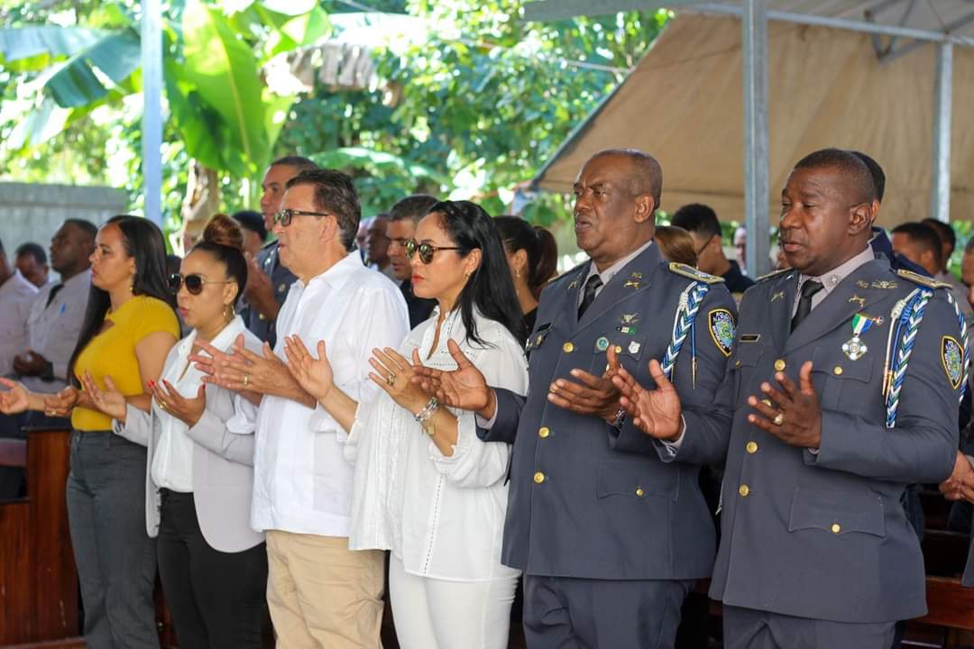 Acto seguido los miembros de la institución se trasladaron al Santuario Nuestra Señora de la Altagracia donde participaron de la santa eucaristía en acción de gracias a Dios la cuál fue oficiada por el sacerdote Wilberto Adames. El reverendo resaltó la labor policial que realizan todos los días sus miembros arriesgando sus vidas al servicio de la patria, al tiempo que felicitó a los agentes del orden.