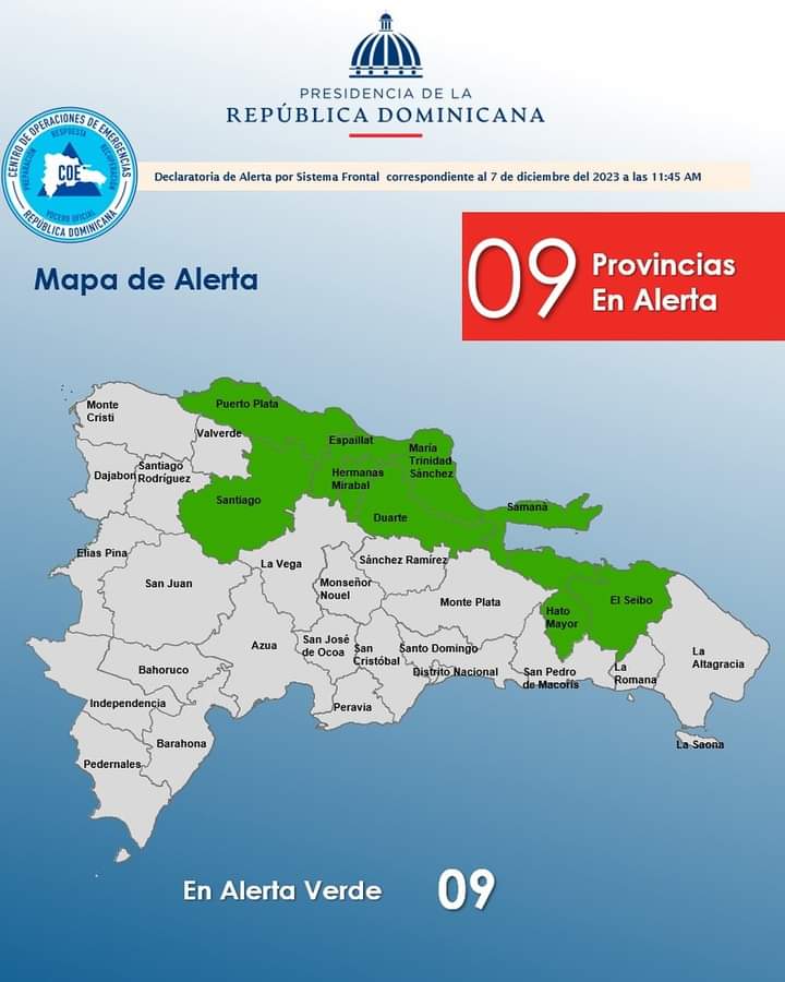 Debido al pronostico de lluvias producto de la incidencia de un sistema frontal que transitará sobre el territorio dominicano a partir de este jueves y el fin de semana.