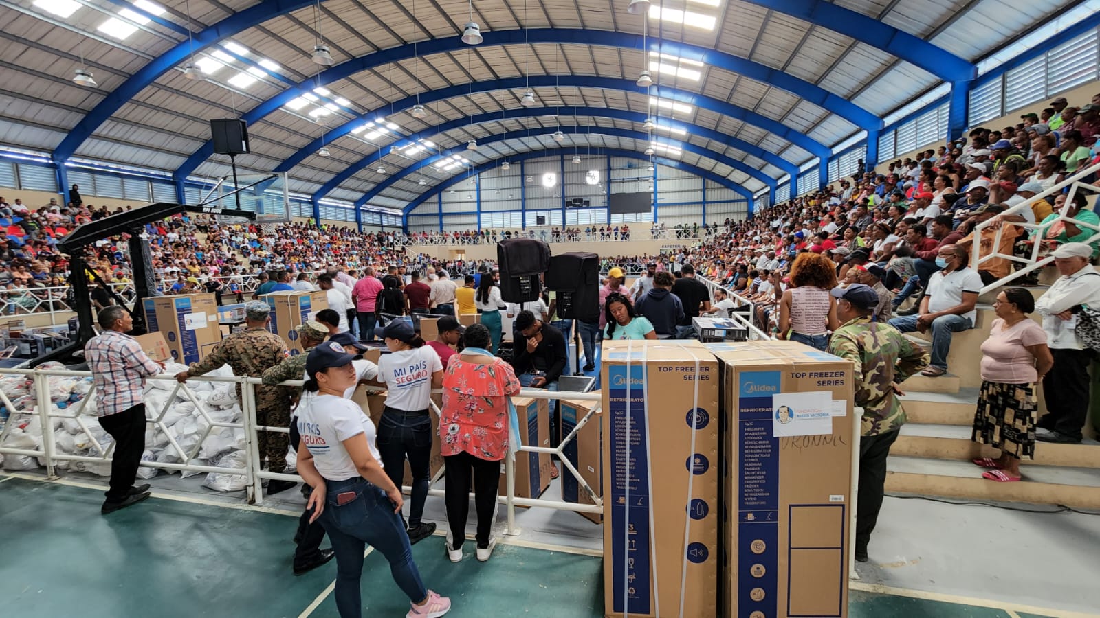 Se rifaron electrodomésticos tales cómo televisores, estufas, neveras, lavadoras entre otros , además de dinero en efectivo de 5,000 pesos y entrega de raciones alimentarias.