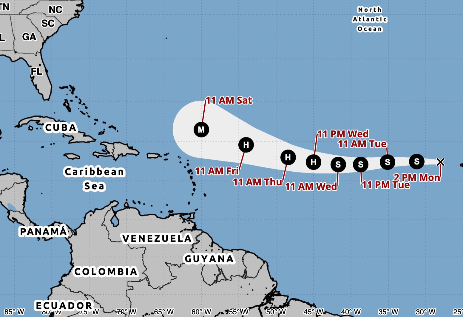 “Trayectoria pronosticada de la Tormenta Erin: se espera que en los próximos días las condiciones ambientales sean propicias para que se intensifique a huracán” escribió Ceballos en su cuenta de X..
