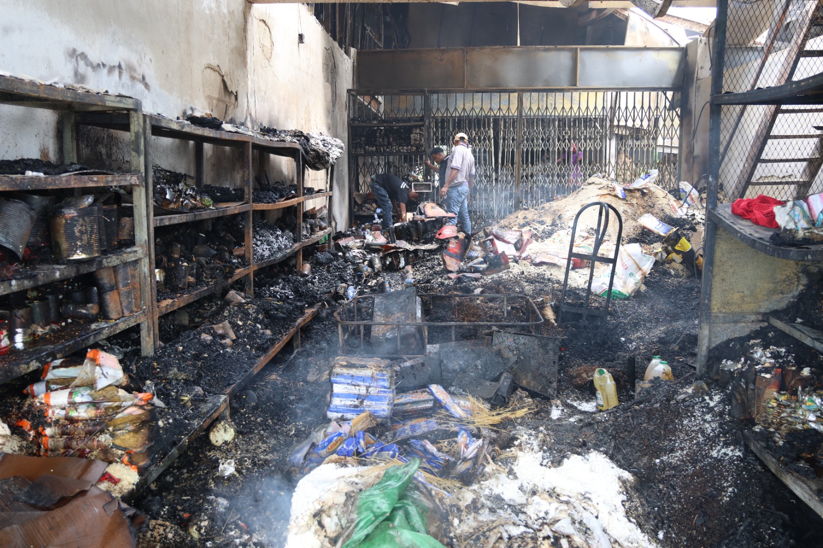 El siniestro se produjo en un gran almacén, dividido por bloques, que contenía arroz, habichuelas, ajo, cebolla, papa, aceite, detergentes, papel, whisky, ron, cerveza, refrescos y agua.