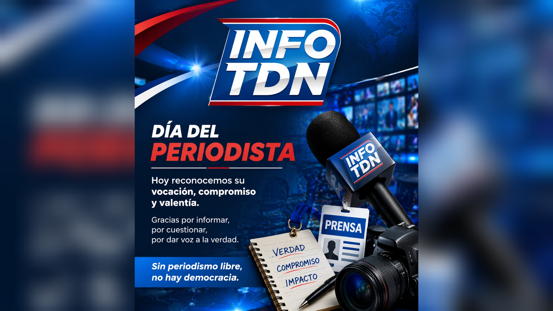 En el marco del Día del Periodista, el Ing. Abraham Victoria, presidente de TDN Medios e Info TDN, felicitó a todos los comunicadores por su invaluable labor en la sociedad. Destacó la importancia de ejercer un periodismo responsable, comprometido con la verdad y al servicio de la comunidad. Asimismo, reiteró su apoyo al fortalecimiento de los medios locales como pilares fundamentales de la democracia.