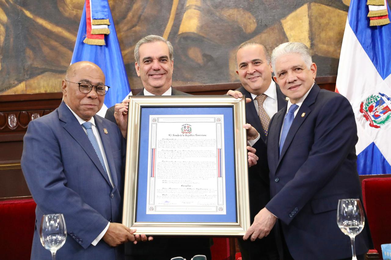 El pergamino de reconocimiento fue entregado en un acto solemne realizado en el Salón de la Asamblea Nacional que contó con la presencia del presidente de la República, Luis Abinader y otras personalidades.