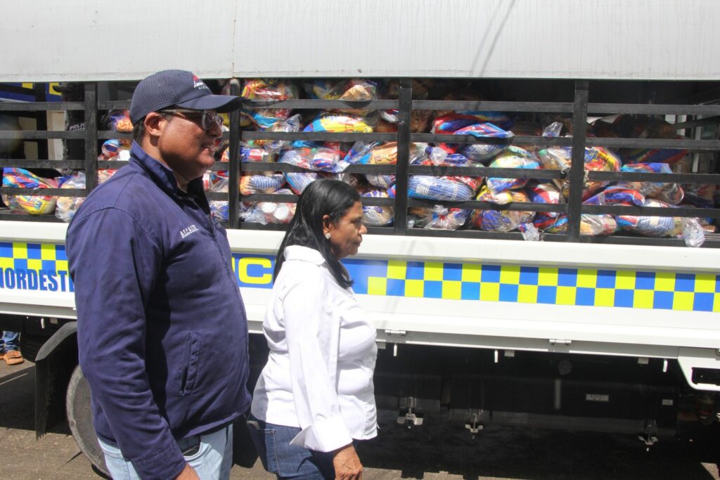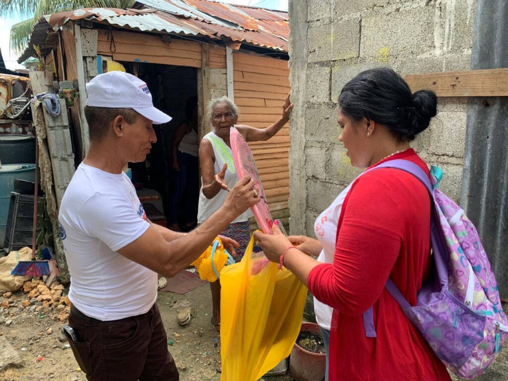 Entrega de raciones alimenticias, cloro, mosquiteros y canastillas para embarazadas.