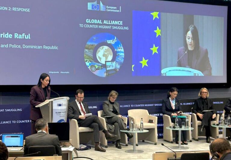 Al margen del evento, la ministra Raful sostuvo reuniones con Magnus Brunner, comisario europeo de Asuntos Internos y Migración, y Bernard Quintin, ministro de Seguridad e Interior de Bélgica, para fortalecer la cooperación en seguridad fronteriza, investigación criminal y prevención del tráfico de migrantes. Su participación reafirma el liderazgo de la República Dominicana en la región en la lucha contra el tráfico ilícito de migrantes, así como su compromiso con la consolidación de marcos de gobernanza basados en derechos humanos, cooperación internacional y responsabilidad compartida.