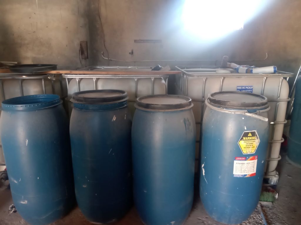 Esta acción se logró a través de labores de inteligencia desplegadas en esa demarcación, dando como resultado la localización de esta fábrica en la calle Brisas de Caucedo, donde se decomisaron seis tinacos y siete tanques, dos de ellos conteniendo clerén, un tanque de hierro destilador y cuatro sacos de sal.