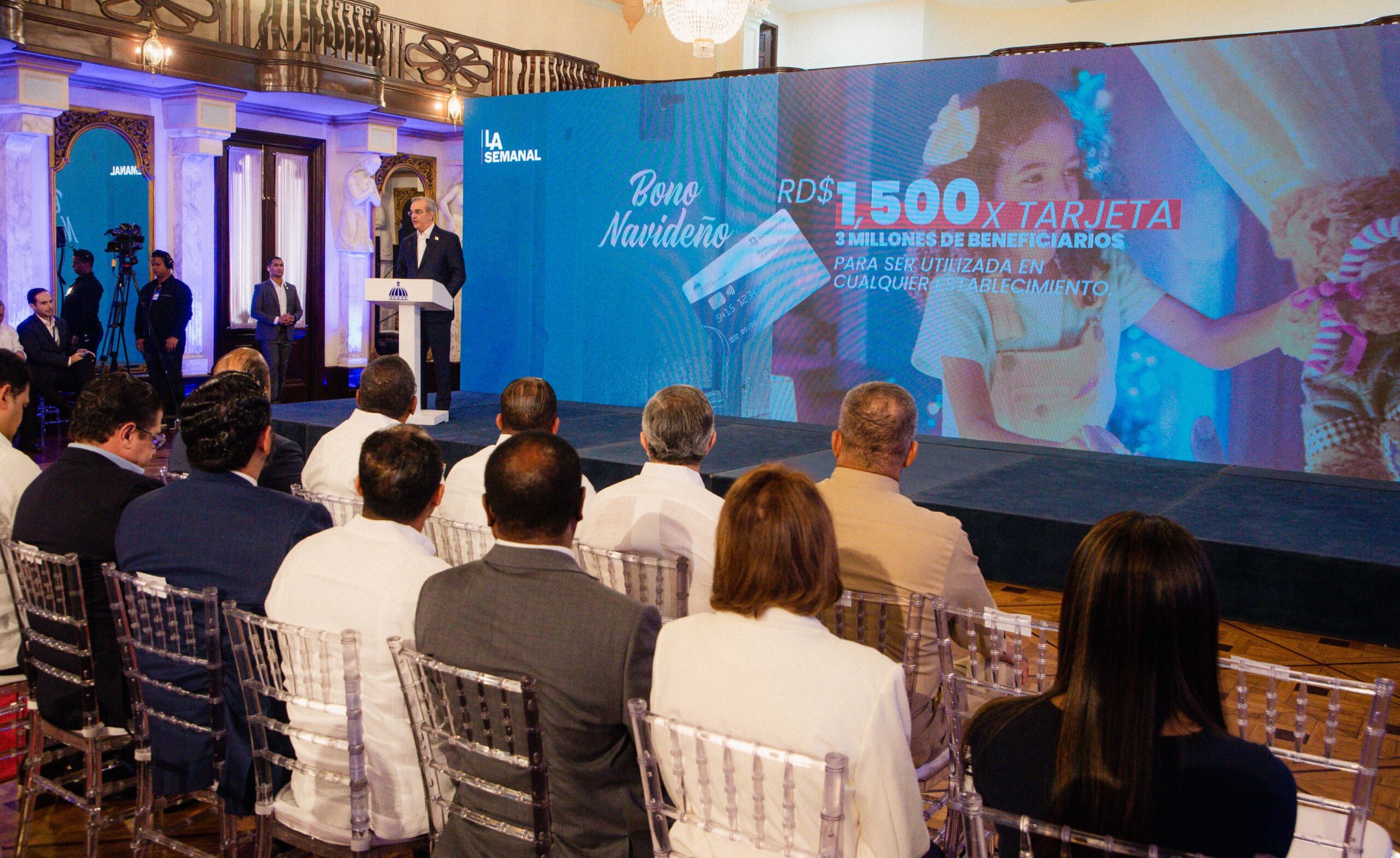 Con el Bono Navideño se beneficiarán 3 millones de personas, recibiendo tarjetas precargadas con un monto de RD 1,500 cada una, a ser utilizadas en cualquier establecimiento.