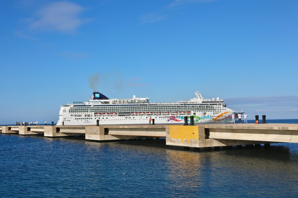 Este primer crucero en Port Cabo Rojo lleva por nombre “Pearl” y pertenece a Norwegian Cruise Line. El mismo zarpó desde Miami, Florida, en los Estados Unidos.
