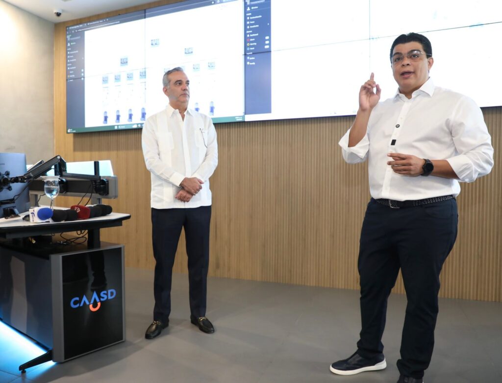 Santo Domingo.- Como parte de su compromiso con la modernización, la eficiencia y la mejora de los servicios públicos, el presidente de la República, Luis Abinader, junto con el director general de la Corporación del Acueducto y Alcantarillado de Santo Domingo (Caasd), Felipe “Fellito” Suberví, inauguró un innovador centro de monitoreo de los sistemas de producción y abastecimiento de agua potable de la institución.
