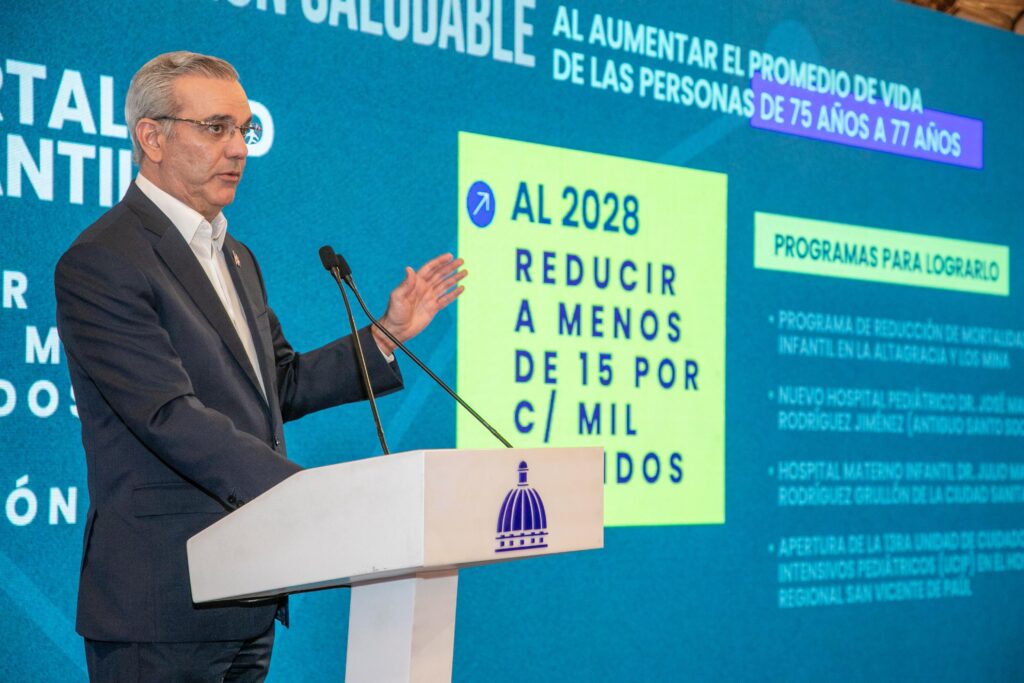 Santo Domingo.- El presidente Luis Abinader reafirmó este lunes su compromiso con el desarrollo del país, al presentar los objetivos del Gobierno de cara al 2028, en busca de expandir la clase media del 37 % al 50 %, reducir el déficit habitacional al 21.9 % y disminuir las muertes por enfermedades crónicas no transmisibles a 25,000 por año.