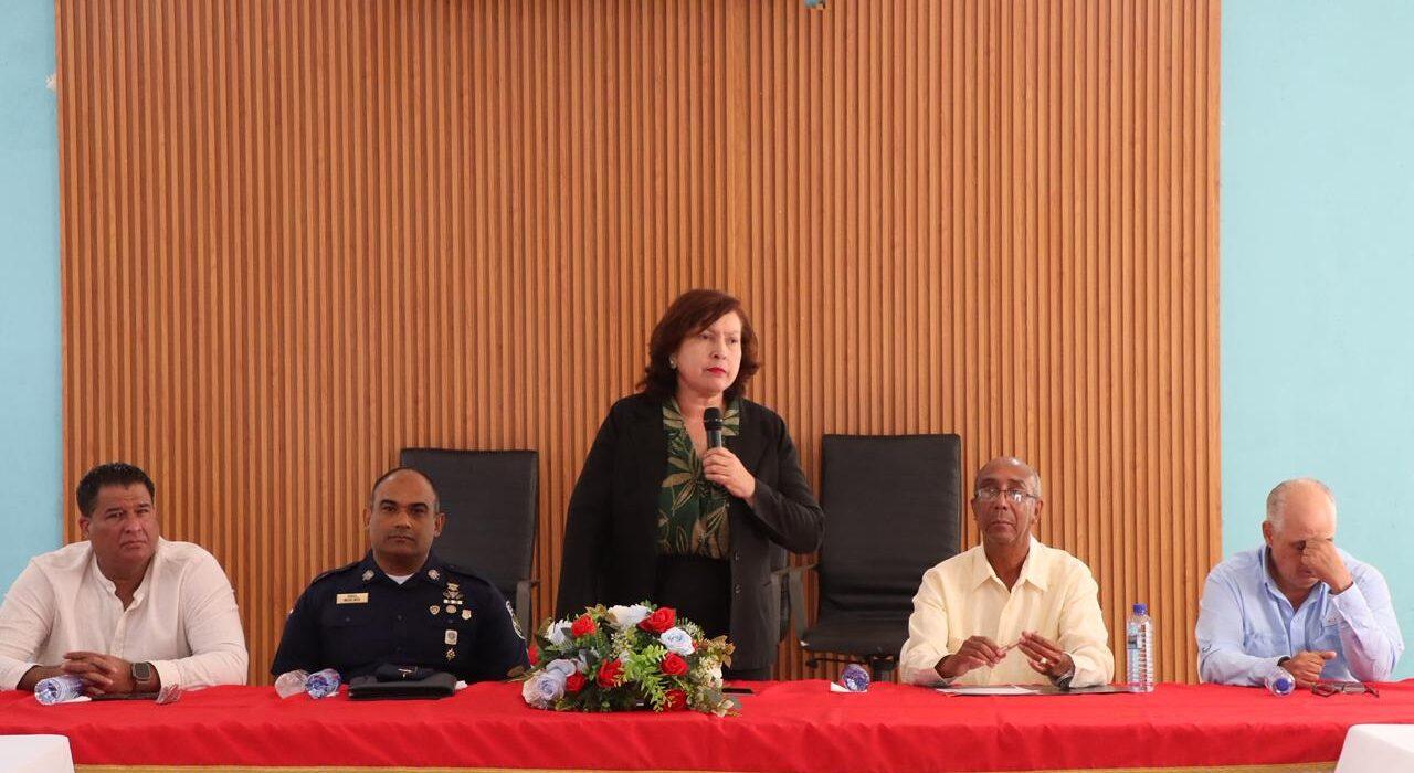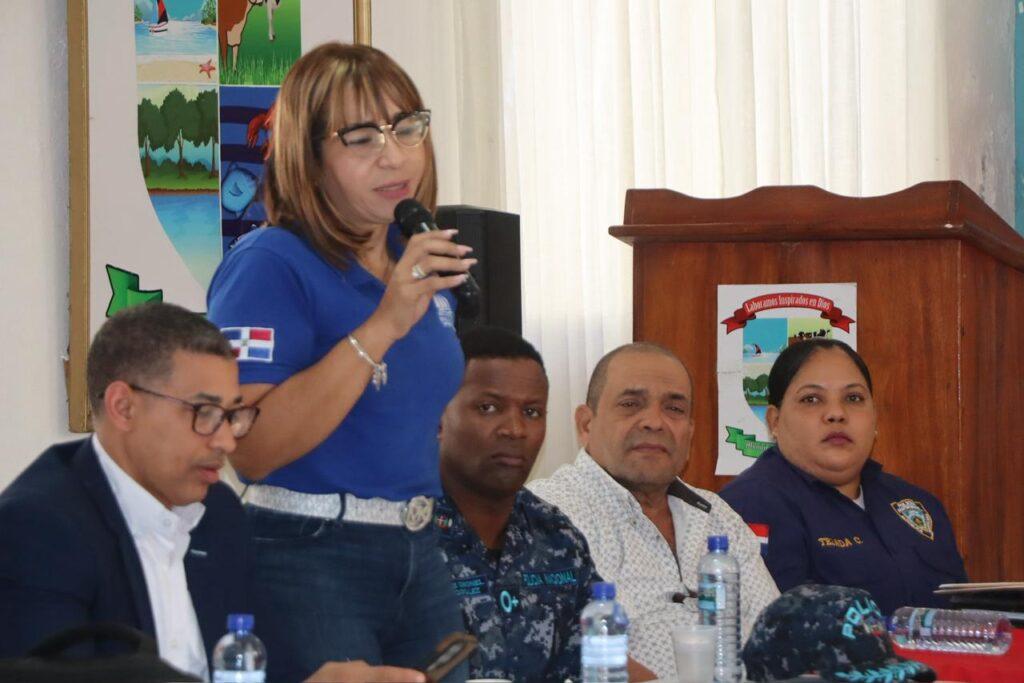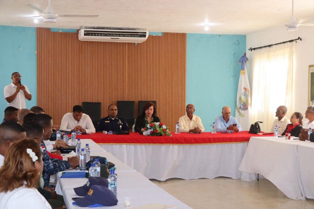 La viceministra de Seguridad Preventiva en Gobiernos Locales, Ángela Jáquez, encabezó los primeros encuentros en la provincia junto a la Gobernación Provincial y autoridades locales, destacando la participación del general Miguelin Mata Rodríguez, director regional de la Policía en María Trinidad Sánchez, y del alcalde de Río San Juan, Lenin Melo.