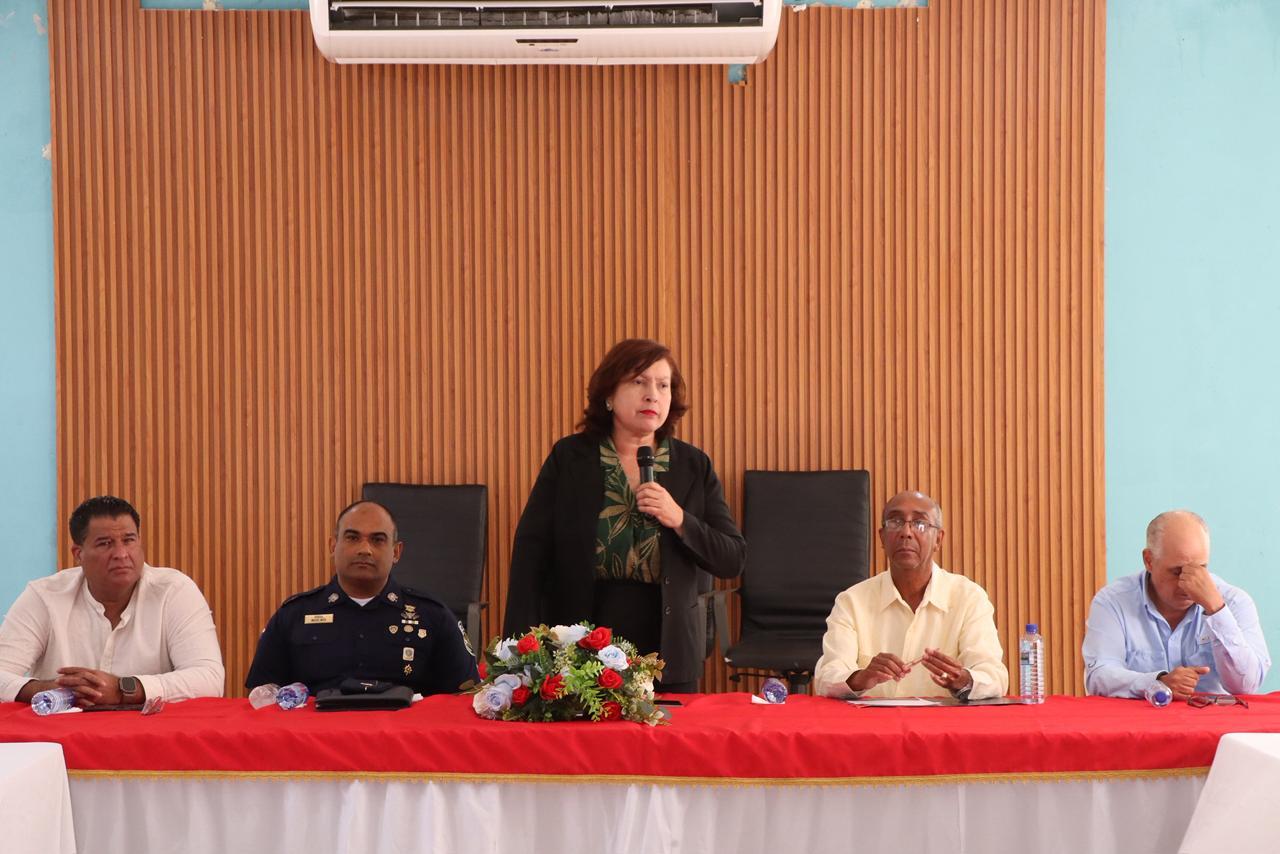 La viceministra de Seguridad Preventiva en Gobiernos Locales, Ángela Jáquez, encabezó los primeros encuentros en la provincia junto a la Gobernación Provincial y autoridades locales, destacando la participación del general Miguelin Mata Rodríguez, director regional de la Policía en María Trinidad Sánchez, y del alcalde de Río San Juan, Lenin Melo.