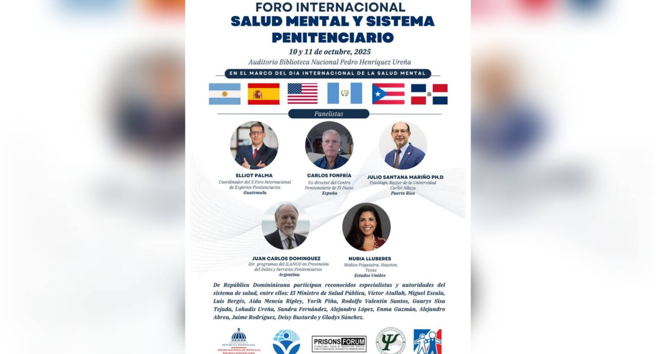 Santo Domingo, R.D. — Los días 10 y 11 de octubre de 2025 se celebrará en el Auditorio de la Biblioteca Nacional Pedro Henríquez Ureña el Foro Internacional “Salud Mental y Sistema Penitenciario”, un evento que reunirá a expertos nacionales e internacionales para analizar los desafíos y avances en la atención psicológica y psiquiátrica dentro del sistema penitenciario.