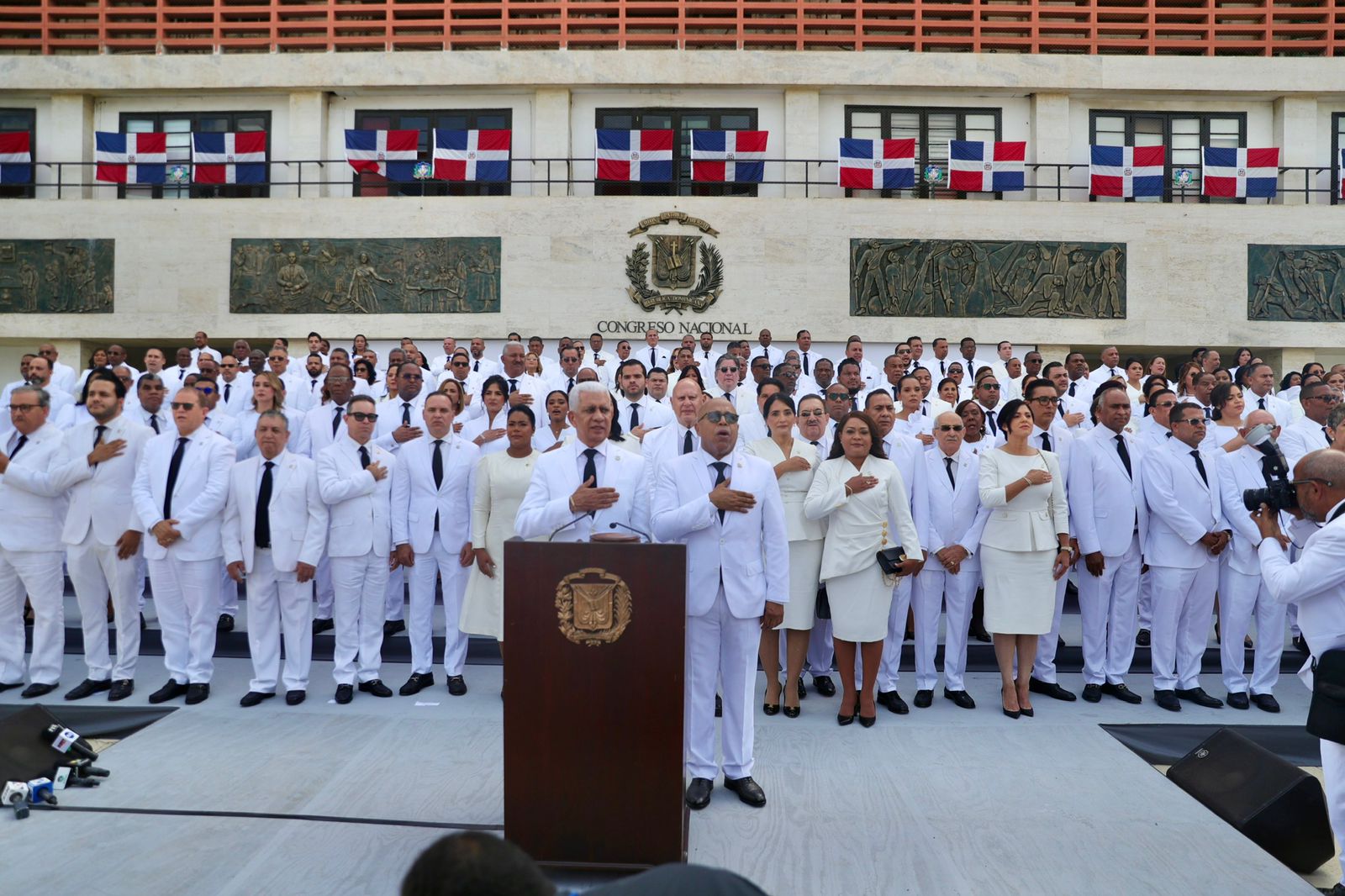 De inmediato, De los Santos invitó a sus pares a “bajar a la explanada donde se tomaron una foto de familia en conjunto con los diputados como muestra de unidad en el cuerpo legislativo.