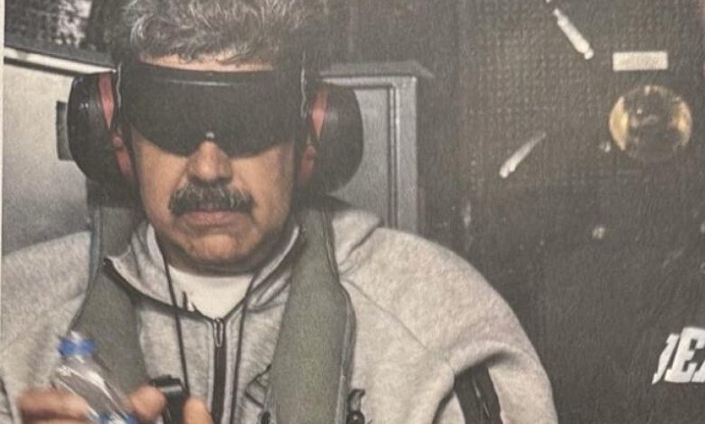 El presidente de EE.UU., Donald Trump, publicó este sábado una foto del presidente venezolano, Nicolás Maduro, esposado y con los ojos y oídos tapados a bordo de un buque militar estadounidense en el Caribe, tras su captura por fuerzas del país norteamericano.